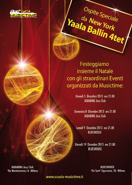 Sarà infatti ospite presso la nostra scuola Yaala Ballin, cantante statunitense di fama internazionale, col suo quartetto di musicisti straordinari: essi presenteranno il loro nuovo progetto discografico, e si esibiranno al fianco degli allievi e della Big band della scuola.